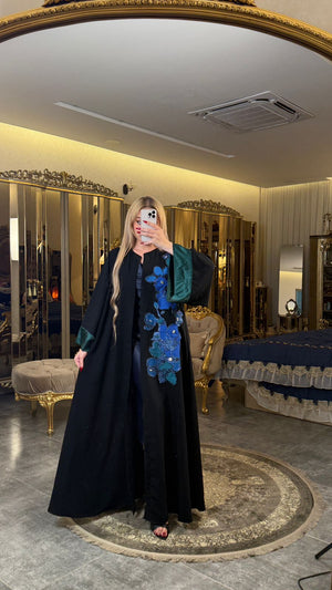 تميّزي بإطلالة فاخرة مع بشت من خامة الجرجيت الفاخرة بتطعيمات ورد الأورغنزا الراقية، يجمع بين النعومة والفخامة في تصميم واحد. مثالي للمناسبات الخاصة والإطلالات المسائية الهادئة التي تعكس ذوقك الأنيق.