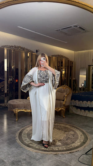 تألقي بإطلالة راقية مع كلابية مغربية من خامة الجرجيت الفاخرة، تجمع بين الأناقة والراحة. مصممة بتفاصيل مغربية أصيلة وقصة انسيابية تمنحك مظهراً أنثوياً جذاباً يناسب المناسبات والسهرات أو الإطلالة اليومية الأنيقة.