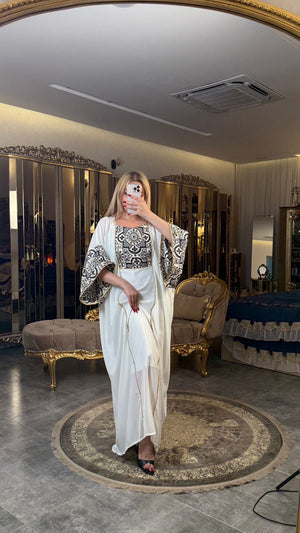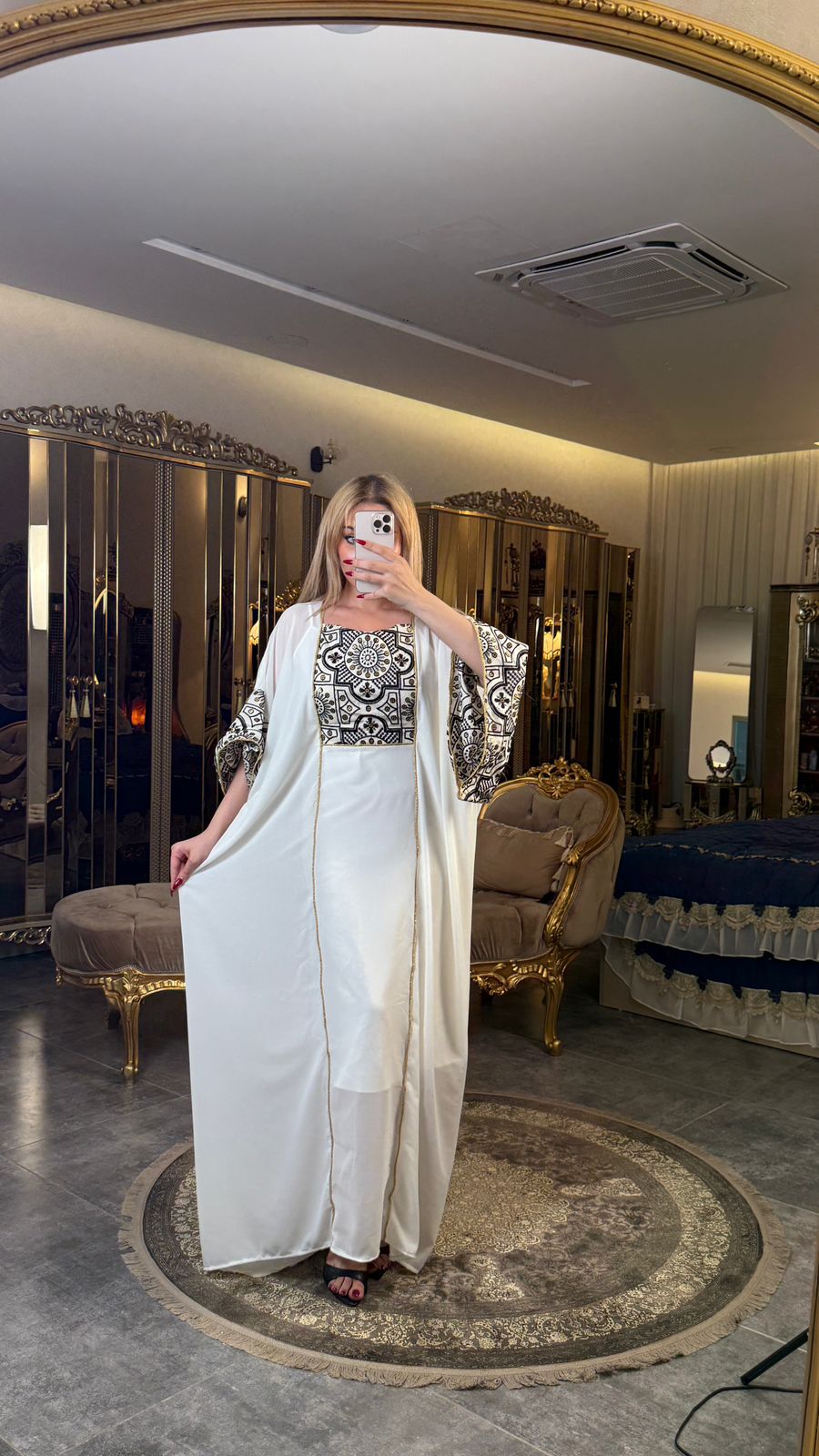 تألقي بإطلالة راقية مع كلابية مغربية من خامة الجرجيت الفاخرة، تجمع بين الأناقة والراحة. مصممة بتفاصيل مغربية أصيلة وقصة انسيابية تمنحك مظهراً أنثوياً جذاباً يناسب المناسبات والسهرات أو الإطلالة اليومية الأنيقة.