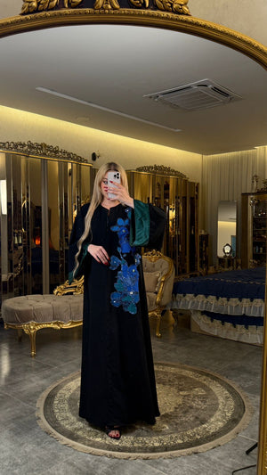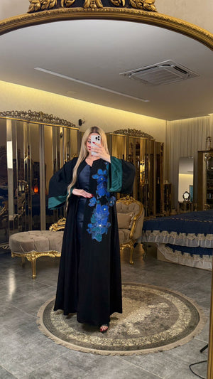 تميّزي بإطلالة فاخرة مع بشت من خامة الجرجيت الفاخرة بتطعيمات ورد الأورغنزا الراقية، يجمع بين النعومة والفخامة في تصميم واحد. مثالي للمناسبات الخاصة والإطلالات المسائية الهادئة التي تعكس ذوقك الأنيق.